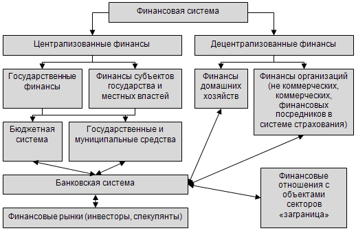 Совокупность финансовых отношений в рамках национальной экономики представляют собой финансовую систему. Она включает государственные финансы, финансы хозяйствующих субъектов и финансы граждан.