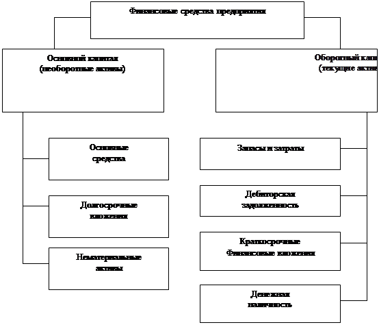 Используются финансовые средства предприятия на приобретение и аренду основных средств, нематериальных активов, строительство объектов производственного и непроизводственного назначения, закупку сырья, материалов, топлива, энергии, оплату труда работников предприятия, уплату налогов, процентов за кредиты, дивидендов и т.д., т.е. он может быть вложен в долгосрочные активы и оборотные (текущие) активы (рис.1.3). Долгосрочные активы создаются, как правило, за счет собственного капитала и долгосрочных кредитов банка и займов. Текущие затраты финансируются за счет собственного и заемного капитала.