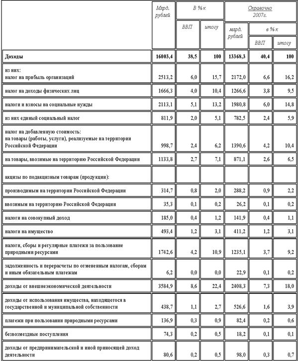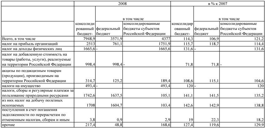 Таблица 1. Поступление налогов, сборов и иных обязательных платежей в консолидированный бюджет Российской Федерации по видам (млрд.руб.)
