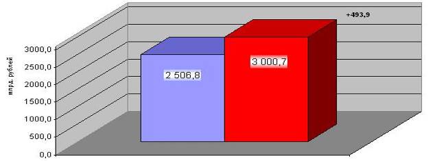В 2009 году в федеральный бюджет планируется поступление доходов 3 000,7 млрд. рублей, что на 493,9 млрд. рублей, или на 19,7% больше, чем за 2008 год (см. рис.1).[5] Доходы бюджетов Российской Федерации состоят из налоговых и неналоговых доходов, а также средств целевых бюджетных фондов.