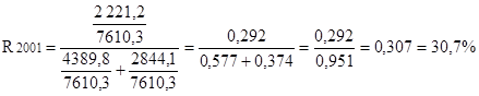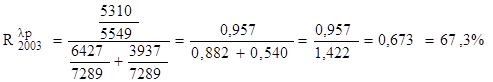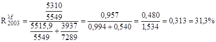 Δ RλE(2003) = R(2003)- RλF(2003) = 0,557 – 0,313 = 0,244 = 24,4 %