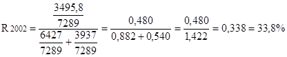 ΔR2002=0.338 – 0.307 = 0.031 = 3,1 %