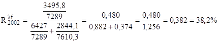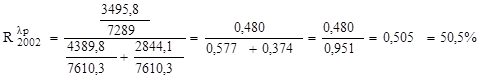 Δ RλE(2002) = R(2002)- RλF(2002) = 0,338 – 0,382 = - 0,044 = -4,4 %