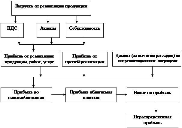 Базой порядка формирования прибыли служит принятая для всех предприятий, независимо от форм собственности, единая модель, представленная на рисунке 1.4.