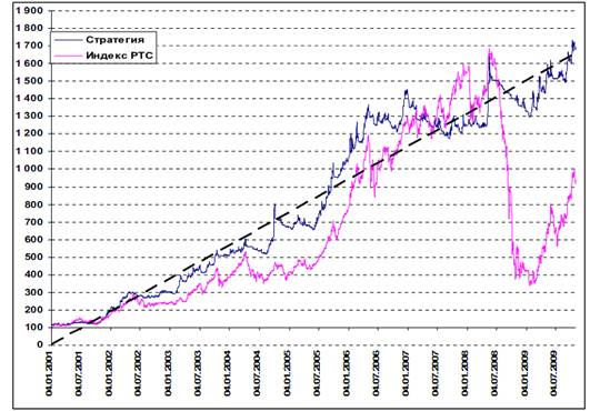 Рисунок 3- Динамика доходности стратегии в сравнении с индексом РТС
