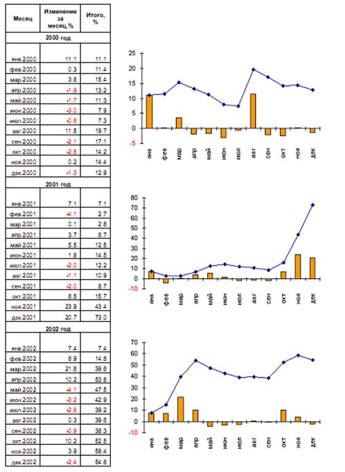 Внутригодовые результаты инвестирования с 2000 по 2002 гг.