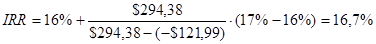 Исходя из расчетов, приведённых в табл. 2.1, можно сделать вывод: что функция NPV=f(r) меняет свой знак на интервале (15%,16%).