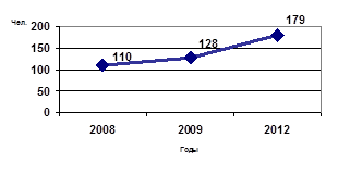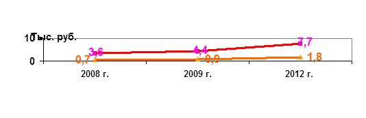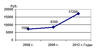 Средняя заработная плата работающего составит в 2012 году - 17 250 рублей, рост в 2,4 раза к уровню 2008 года (рис. 2):