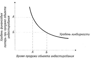 Следует отметить, что показатели ликвидности инвестиций по времени и уровню финансовых потерь находятся между собой в обратной связи (см. рисунок 4):