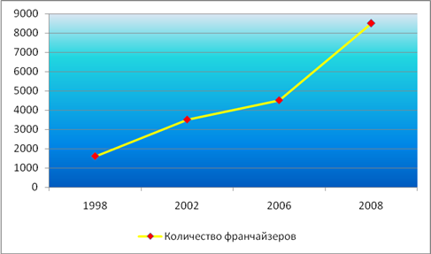 В 2004 г. в Британии существовало 568 франчайзеров и 29 100 франчайзи, в 2008 г. - 670 франчайзеров.