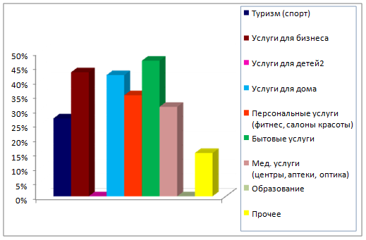 Наибольшее количество предложений франшиз было в секторе услуг для бизнеса: консалтинг, реклама, обслуживание компьютерного оборудования и др. Также хорошо представлены на рынке такие услуги как парикмахерские, салоны красоты, фитнес-центры. Сохранил свои позиции туристический сектор. Отставание сектора услуг от других в предыдущий период времени во многом связано с общими тенденциями в сфере услуг, а с точки зрения франчайзинга, с более длительным и сложным характером разработки концепции и Системы франчайзинга в организациях, оказывающих услуги. Это объясняется нематериальным характером услуги, необходимостью формирования стандартов по всем этапам процесса оказания услуги, широким спектром требований к менеджменту и сотрудникам, непосредственно работающим с потребителями услуги. Торговая марка в секторе услуг несет потребителю информацию не о конкретном материальном продукте, а о процессе, а вернее о стандарте этого процесса, его качестве, формате оказания услуги. В отличие от товарного франчайзинга, где основным продуктом является конкретный товар и франчайзинга в питании, где системы сориентированы на технологии приготовления пиши, во франчайзинге услуг принципиально важными являются ноу-хау, а также знания и навыки сотрудников, их квалификация, личные достижения и мастерство, коммуникабельность и качество общения с непосредственными потребителями услуги.