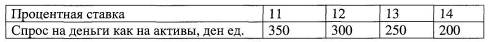 Предложение денег увеличилось до 550 ден.ед. Определить равномерную процентную ставку на денежном рынке.