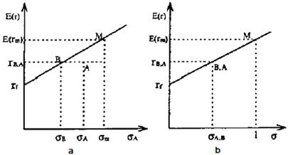 На рис. 7a представлен эффективный портфель В, который располагается на CML. Риск портфеля равен σB, а ожидаемая доходность - rB.