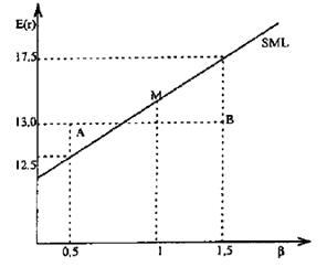 Согласно SML доходность А в условиях равновесия должна составлять 12,5%, фактическая оценка - 13%, т. е. актив предлагает 0,5% дополнительной доходности, поэтому его альфа равна +0,5. Противоположная ситуация представлена для актива В. Его равновесная ожидаемая доходность согласно SML составляет 17,5%, фактически он предлагает 13%, т. е. его альфа равна -4,5. Таким образом, актив недооценен рынком, если его альфа положительна, и переоценен, если отрицательна.