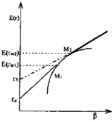Для данного варианта возникают две формулы САРМ и SML, которые рассчитываются относительно двух рыночных портфелей в точках M1 и M2.