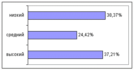 Рис. 3 Уровень реального проявления ответственности в методике "Задание с пятницы на понедельник".