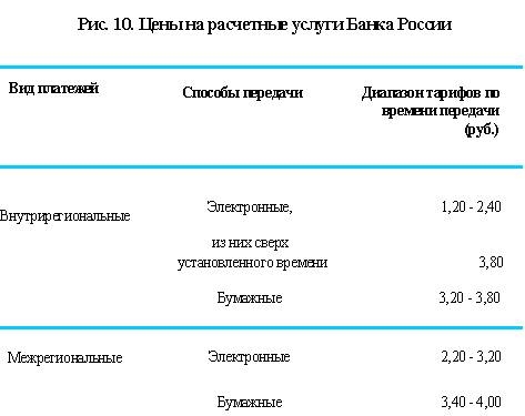 Плата за расчетные услуги Банка России впервые введена с 1 января 1998 года. Ценовая политика Банка России основана на дифференциации тарифов в зависимости от видов платежей, способов и времени передачи платежных документов.