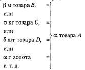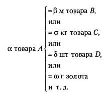 Тогда при росте предложения отдельный товар можно обменять на какой-либо иной конкретный товар из некоторого множества. В результате увеличивается потенциал различных вариантов обмена одного вида товаров на другие виды, а с ними и ряд простых выражений стоимости товара. Причем этот ряд может быть удлинен как угодно. Появляется полная, или развернутая, форма стоимости товара. Она выражается следующей научной формулой: