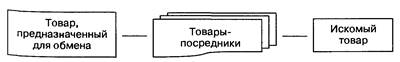 Вместе с тем полная, или развернутая, форма стоимости порождает и путь решения, снятия проблемы. Он состоит в объединении всех промежуточных сделок с тем, чтобы обмен принял вид:
