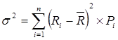 - дисперсия денежного потока, Ri - конкретное значение объема денежного потока в каждом интервале рассматриваемого общего периода времени,