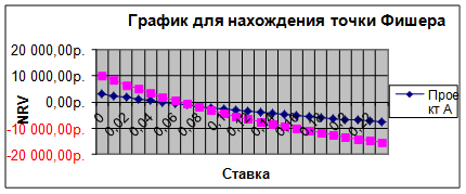 Далее, найдем точку Фишера. Для этого построим таблицу значений NRV в заивисимости от ставки дисконтирования.