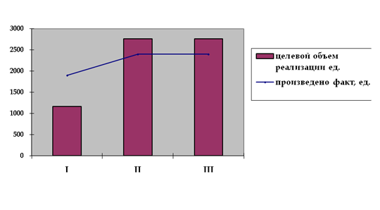 Очевидно, что если в первый год фактически произведенная продукция превысит целевой объем реализации и следовательно принесет дополнительную прибыль предприятию, то на втором и третьем году реализация не превышает целевой объем, следовательно предприятие не достигает намеченных результатов.