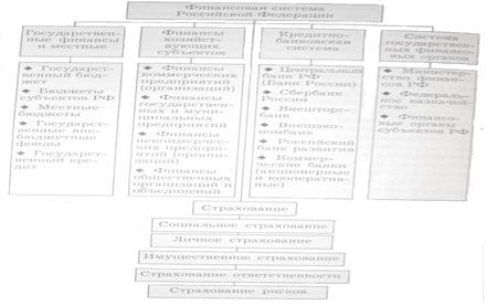 В соответствии с перечисленными сферами финансовой системы выделяются в соответствующие звенья. К государственным и территориальным финансам относятся: