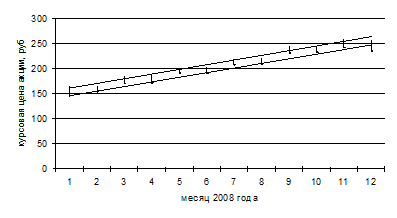 Таблица 6 – Котировка акций А ОАО «Ростик’с» на фондовой бирже в 2008 г.