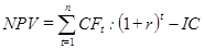 Значение чистого потока денежных средств за время жизни проекта, приведенное в сопоставимый вид в соответствии с фактором времени, есть показатель, называемый чистой приведенной стоимостью проекта (NPV–Net Present Value). В общем виде формула расчета выглядит следующим образом: