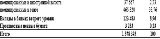 Как видно из приведенных данных, наибольшую долю в инвестиционном портфеле по прежнему составляют негосударственные ценные бумаги эмитентов Республики Казахстан и государственные ценные бумаги, общая доля которых составила 77,19%. [24]