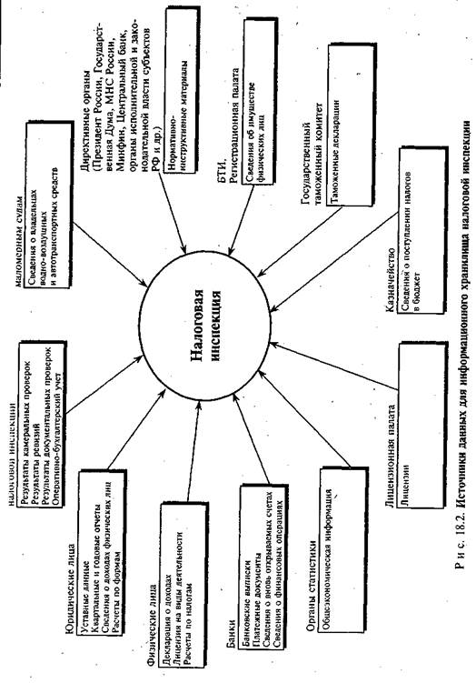 Основная цель создания хранилища данных налоговой службы заключается в обеспечении целостного, объективного образа существующей реальности в сфере налогообложения. Для получения такого объективного представления в электронном информационном хранилищ должны накапливаться сведения из всех возможных источников (рис. 18.2).