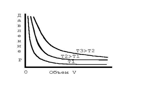 Зависимость одной характеристики состояния вещества от другой при постоянной температуре называется изотермой. Изотермы, найденные Бойлем и Мариоттом, похожи на гиперболы. На графике видно несколько гипербол: каждая из них соответствует своей температуре, причем та гипербола, которая получена при более высокой температуре, располагается выше. Это наблюдение выражается вторым газовым законом, который установил французский ученый Шарль в 1787 году: объем газа при постоянном давлении пропорционален его температуре.