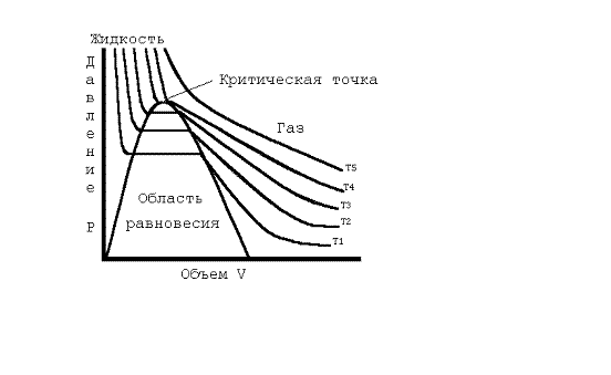 Если температура газа намного превышает критическую, то на диаграмме Эндрюса изотермы представляют собой почти идеальные гиперболы. По мере приближения ее к критической температуре изотермы начинают все более отклоняться от гипербол, и эти отклонения говорят о все большем отличии состояния вещества от идеального газа, все большей близости его к превращению в жидкость.
