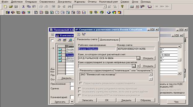 Рис. 4. Диалоговое окно «Сведения о расчетном счете».