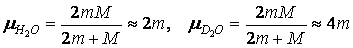 Увеличение массы легкого атома в молекуле D2О, однако, существенно сказывается на увеличение приведенной массы всей молекулы: