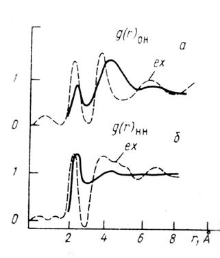 Большую информацию относительно усредненной во времени геометрии молекулы Н2О в жидкой фазе можно получить из данных для трех парных корреляционных функций жидкой воды: