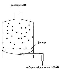 Слишком большая скорость перемешивания может приводить к коагуляции, а слишком маленькая - к закупориванию фильтра.Время нахождения ПАВ в ячейке должно быть по крайней мере порядка одного часа, чтобы была уверенность в том, что в системе достигнуто равновесие.