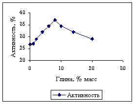На рис. 1 показано влияние содержания глины на активность катализатора.