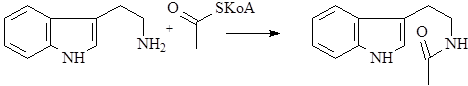 Образование иной циклической структуры из триптамина возможно после его предварительного ацилирования с помощью активированного ацетила – ацетил KoA.