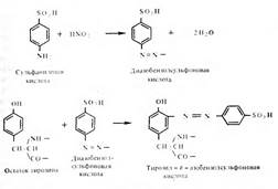 Тест-антиген получают, конъюгировав с диазобензол-сульфоновой кислотой другой тирозинсодержащий белок; последний не должен иметь сходства антигенной структуры с белком — носителем детерминантной группы, использованным для иммунизации. В избранном нами случае таким белком может быть яичный альбумин. Если при добавлении тест-антигена к исследуемой антисыворотке образуется преципитат, существование антител против сульфаниловой кислоты можно считать доказанным.