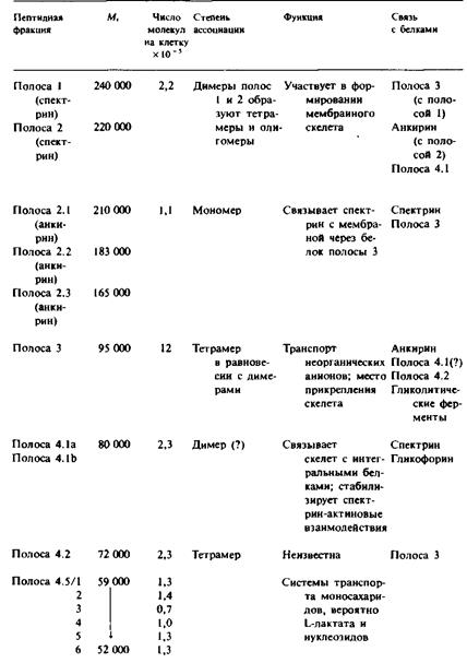 Таблица 2. Свойства, степень ассоциации и функции эритроцитарных мембранных белков