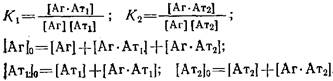 находят приближенные параметры В\ и В% и В=В1-\-В2 при различных концентрациях Аг.