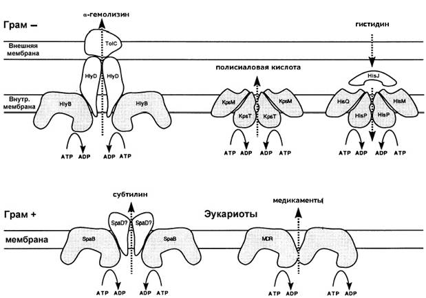 Подобные АВС-транспортеры обнаружены как в клетках грамположительных и грамотрицательных бактерий, так и в эукариотических клетках (M. Fath еt al., 1993).