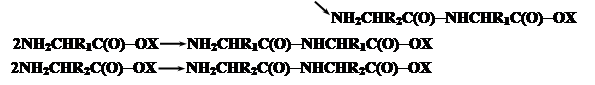 При синтезе нерегулярных полипептидов базируются также на активации карбоксильных групп. Большинство из них базируется на использовании N,N-дициклогексилкарбодиимида (ДЦК). Он способен в присутствии RCOO- и амина NH2R’ осуществить активацию карбоксильных групп: