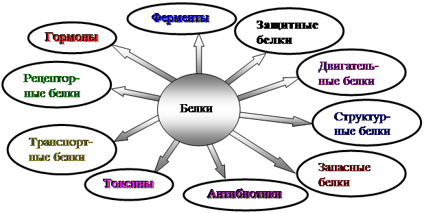 Функции белков чрезвычайно многообразны. Каждый данный белок как вещество с определенным химическим строением выполняет одну узкоспециализированную функцию и лишь в нескольких отдельных случаях – несколько взаимосвязанных. Например, гормон мозгового слоя надпочечников адреналин, поступая в кровь, повышает потребление кислорода и артериальное давление, содержание сахара в крови, стимулирует обмен веществ, а также является медиатором нервной системы у холоднокровных животных.