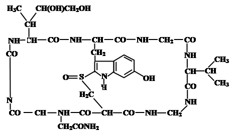 Ряд живых организмов в качестве защиты от потенциальных врагов вырабатывают сильно ядовитые вещества - токсины. Многие из них являются белками, однако, встречаются среди них и сложные низкомолекулярные органические молекулы. В качестве примера такого вещества можно привести ядовитое начало бледной поганки - a-аманитин: