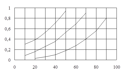 Рис. 8.2 Зависимость давления насыщенного пара (Р×10-5 Па.) жидкости от температуры (ацетон, этиловый спирт, вода – соответственно).