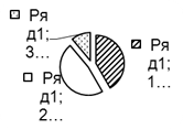 Рис. 3. Соотношение трофических групп почвенной мезофауны (% от общей биомассы): 1 – хищники, 2 – сапрофаги, 3 – фитофаги; А — лес, Б — болото, В — луг.