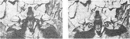 Рис. 3. Отпугивающий узор на крыльях бражника, потревоженного потенциальным хищником. Внезапное появление пятен, похожих на глаза, часто отпугивает мелких птиц.