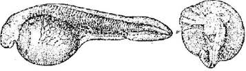 Стадия 34 – конец хвоста достигает начала продолговатого мозга (рис. 35). Зародыш активно двигается в оболочках, если оболочки снять, способен к слабому поступательному движению.